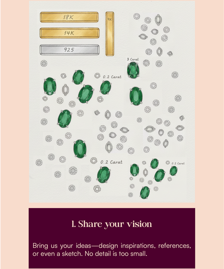 Bijou Co. Atelier is where your vision meets expert craftsmanship. Every piece is custom-designed and hand-crafted from scratch, created exclusively for you with precision, intention, and care.