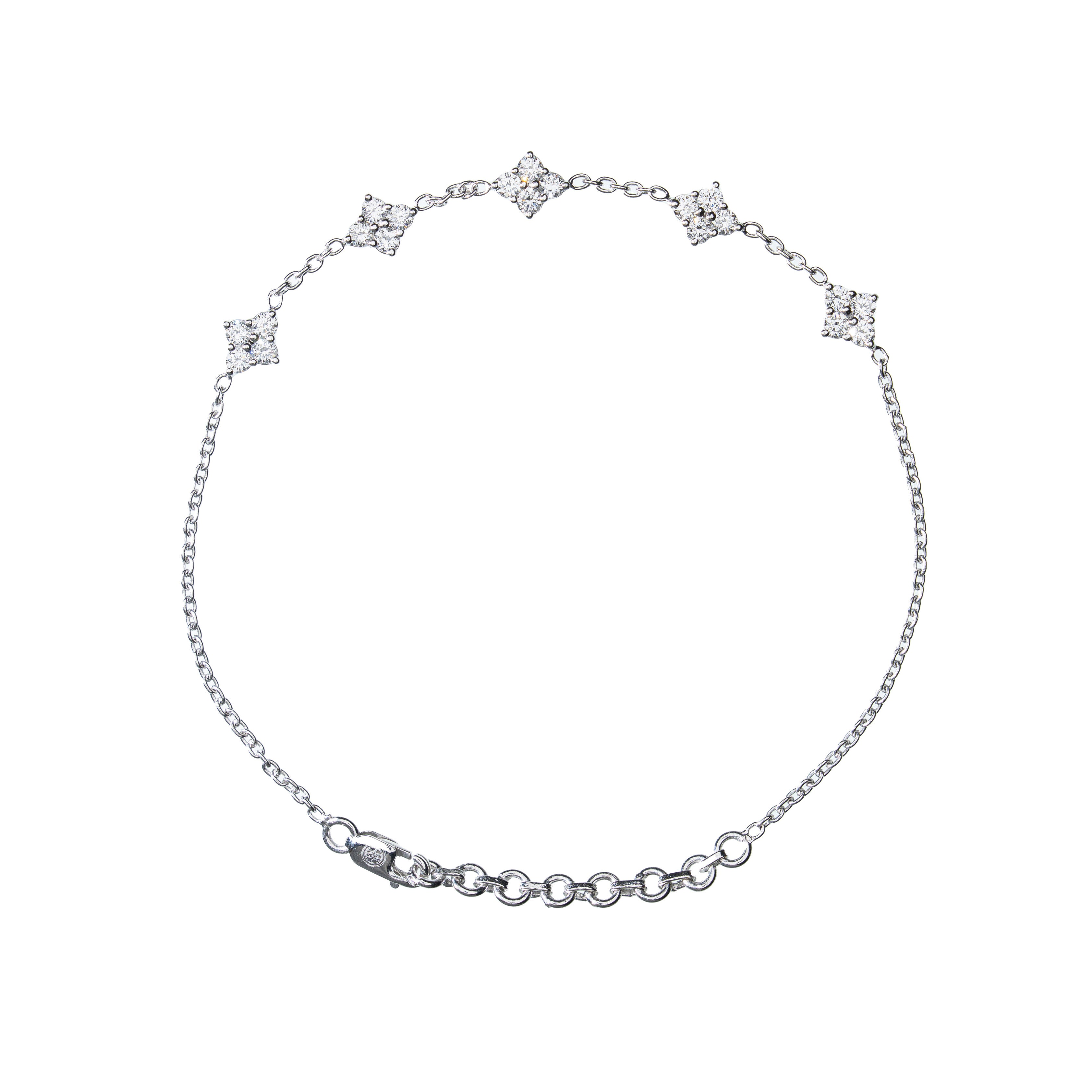 This bracelet contains round cut diamonds and comes in your choice of metal and color.