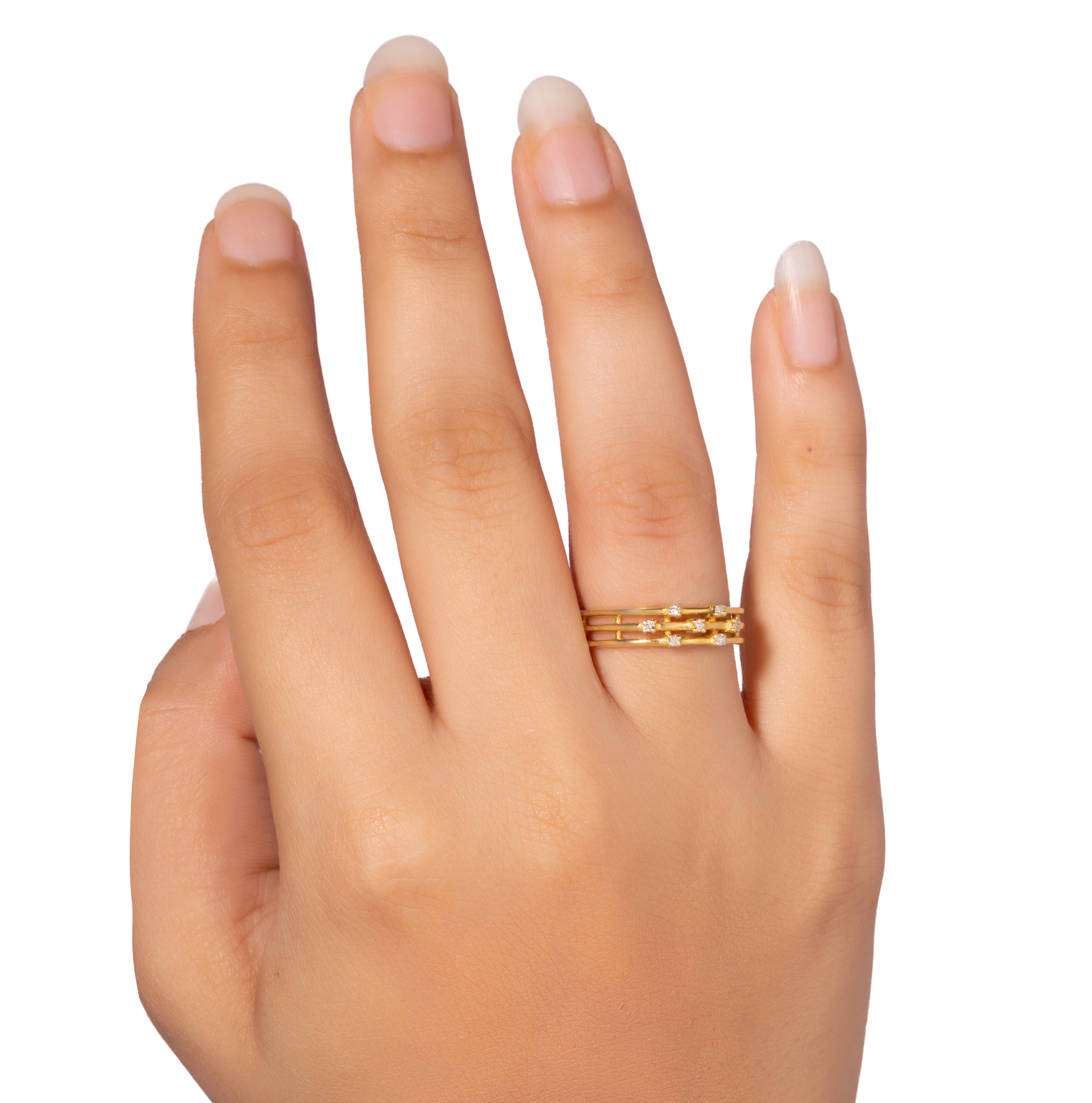 Let the sparkle flow! Our Cascade Ring features three parallel bands shimmering with a waterfall of round diamonds.