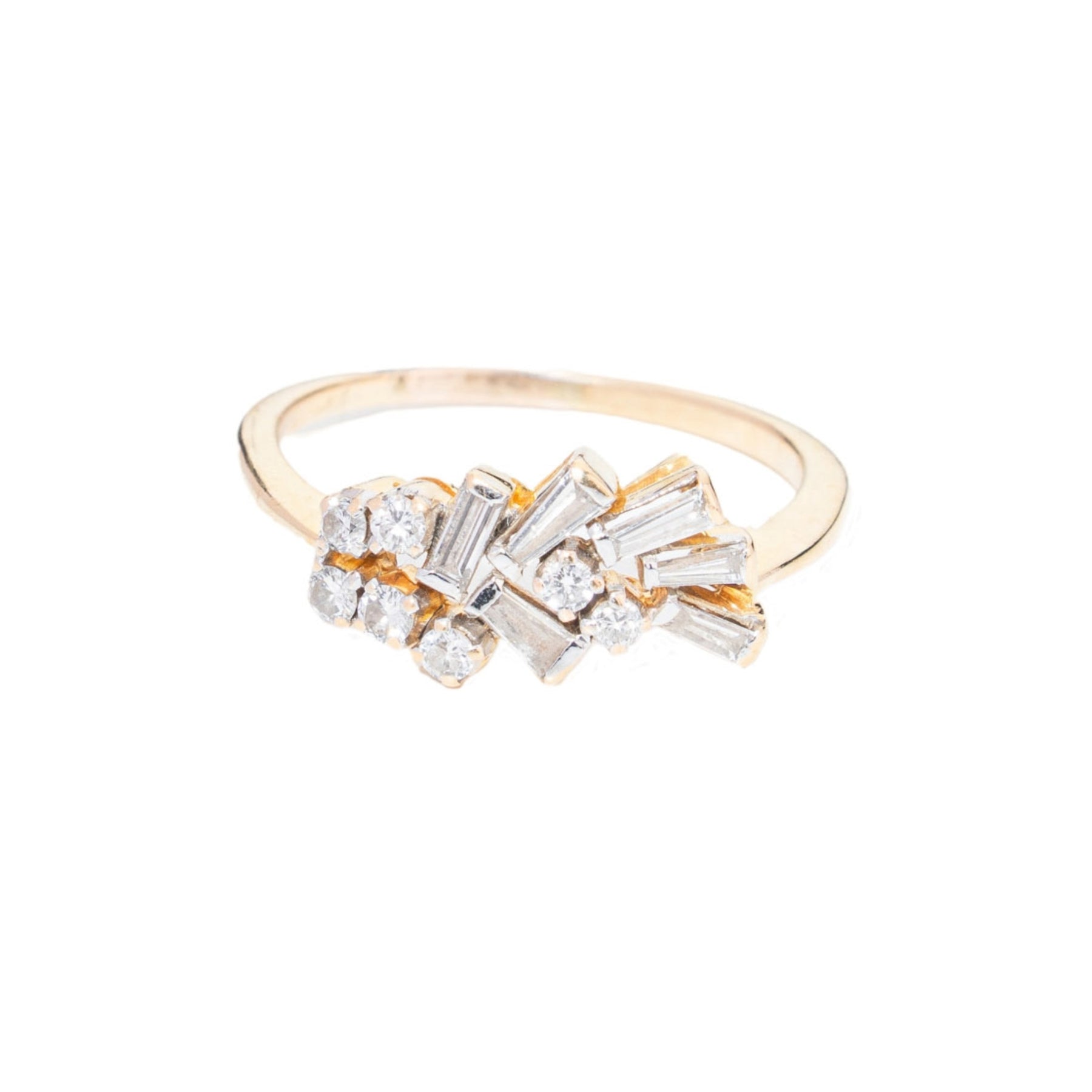 A party on your finger, where all the diamonds are invited. Features baguette and round cut diamonds.