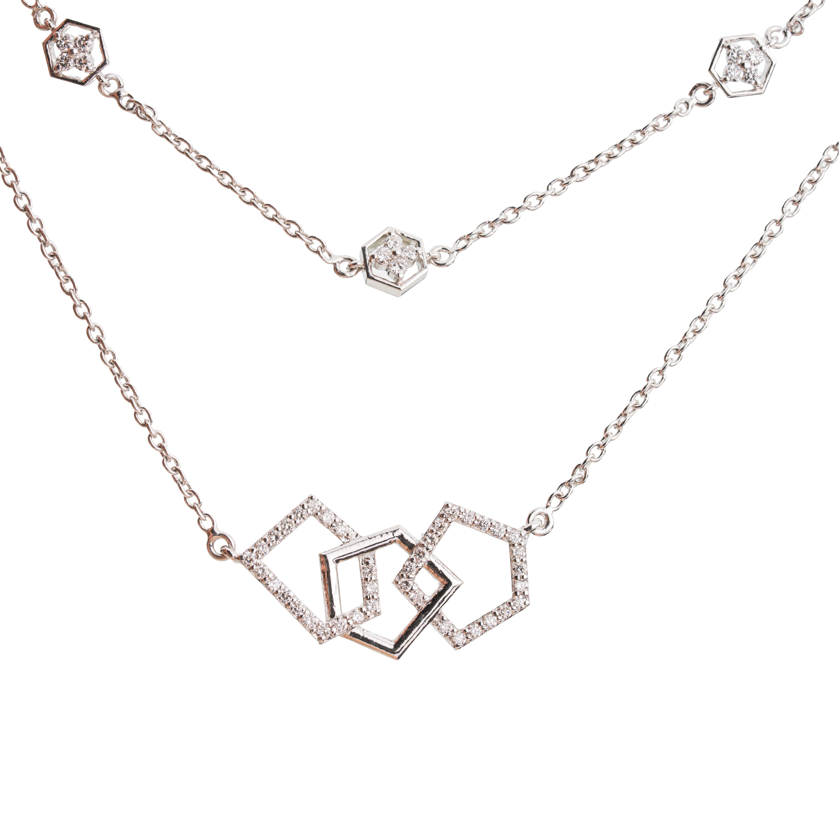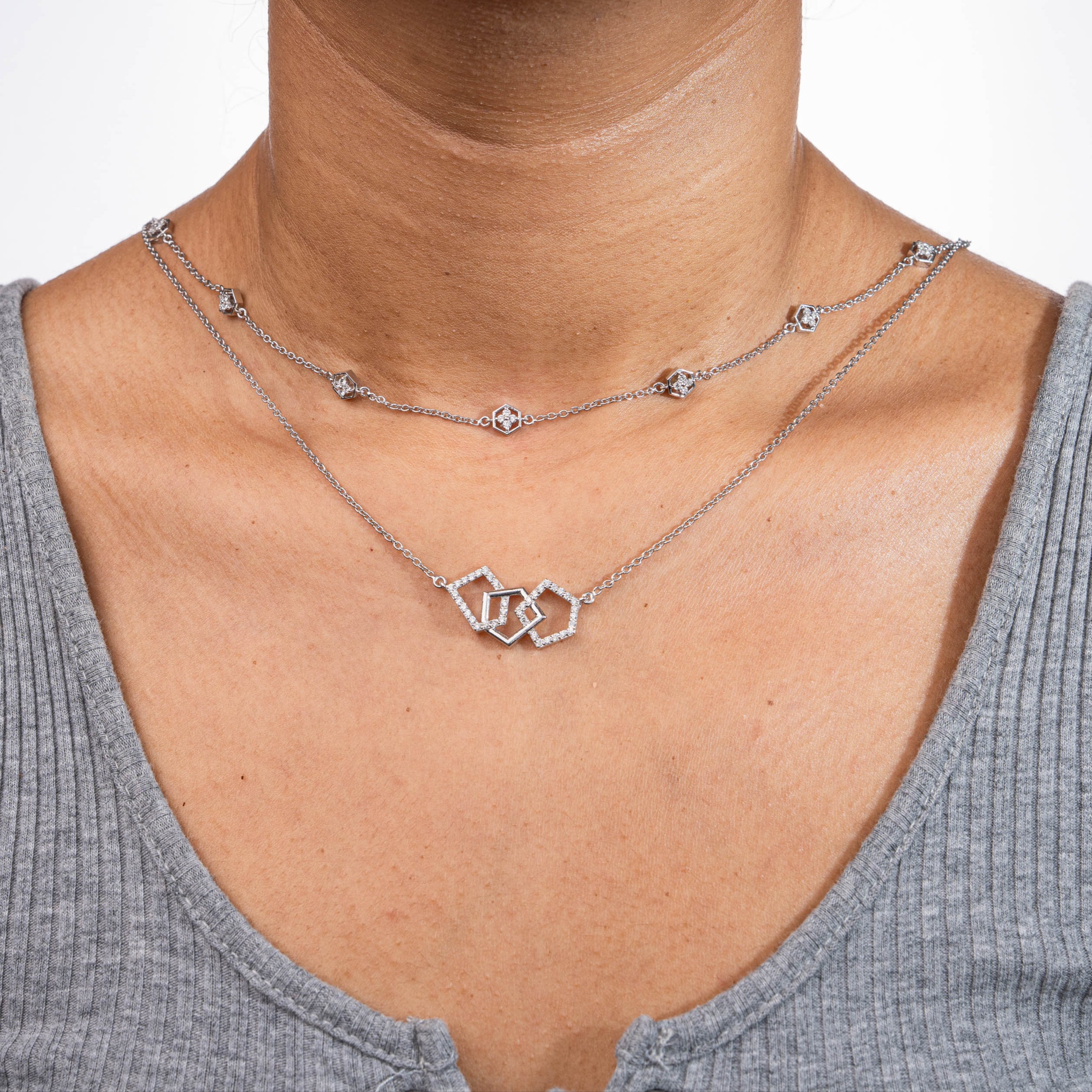 Intersecting pentagons, round cut diamonds, a quintessential diamond glow.