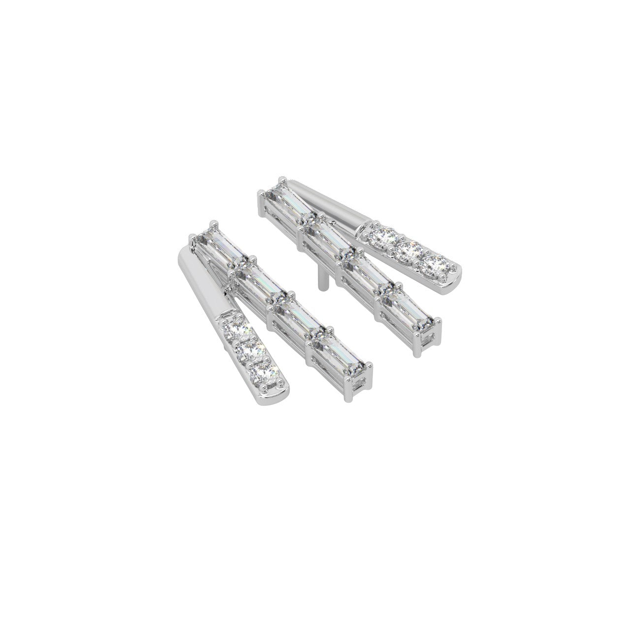 So stylish, they'll make your other earrings start writing poetry about their lost potential. Featuring round and baguette cut diamonds.