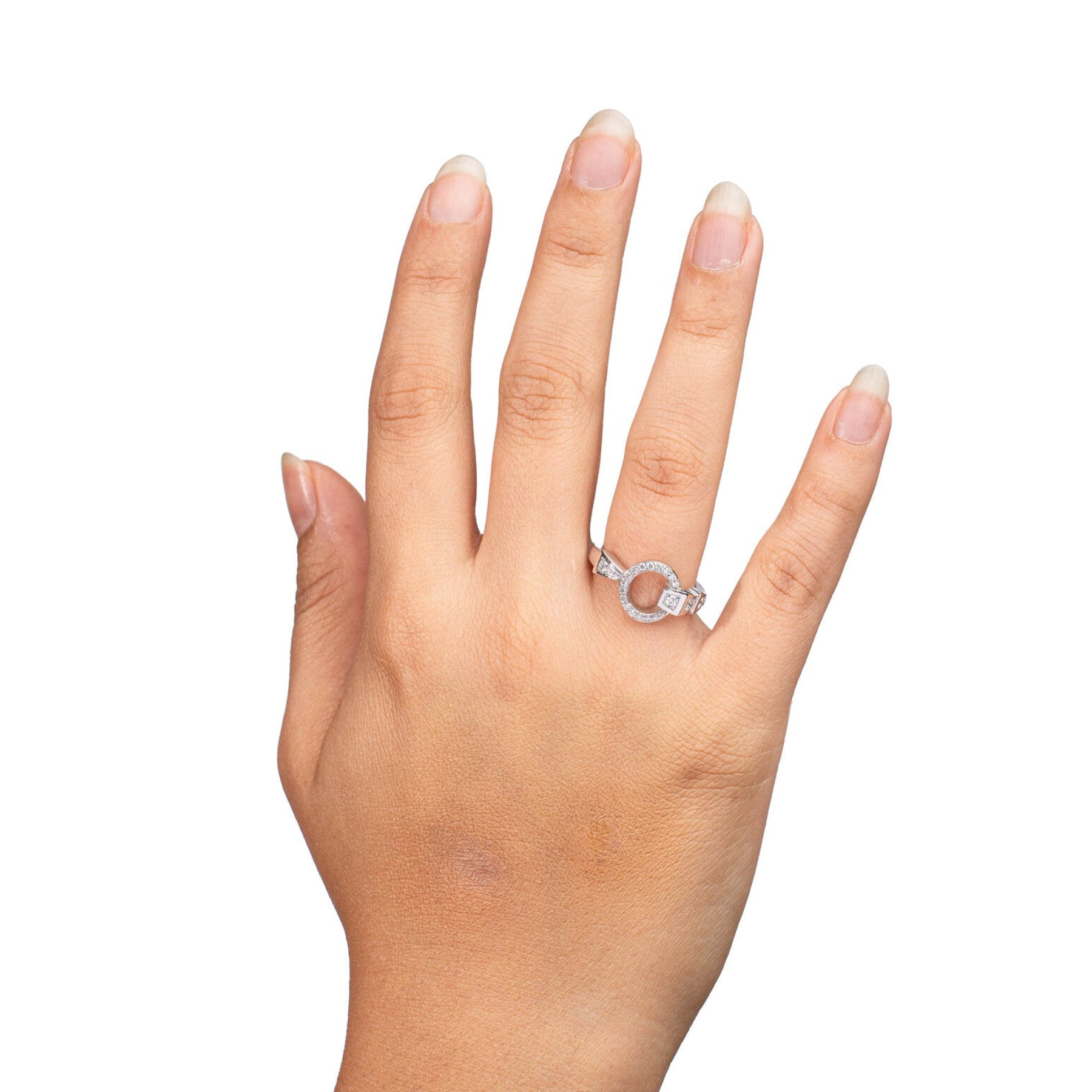 Where captivating curves meet a celestial glow and round cut diamonds, for a look that's both divine and devious.